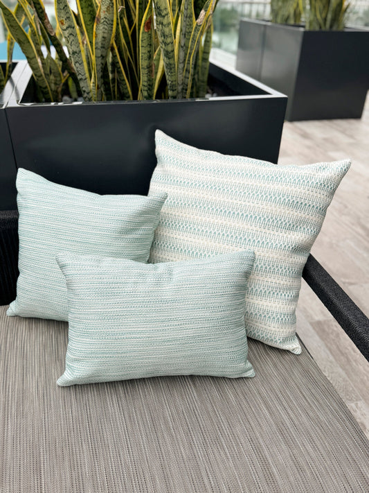 Bay View Aqua Indoor Outdoor Table Runner, Placemats, and Pillows Collection