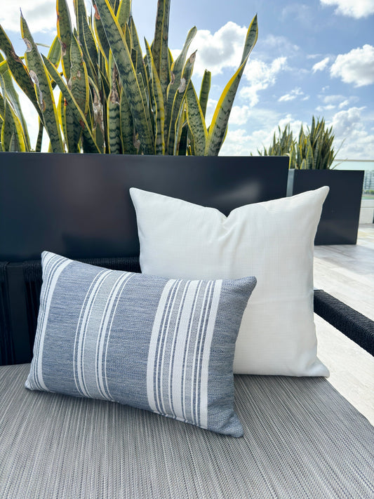 Beach Club Indigo Stripe Indoor Outdoor Pillow, Floor Pillow, Placemat, Table Runner Collection