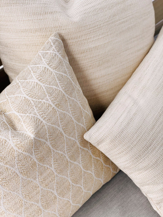 Seaside Smooth Beige Indoor Outdoor Table Runner, Placemat, and Pillow Collection