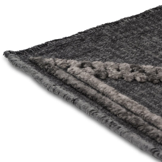 Myst Anthracite Grey Beige Moroccan Fringed Rug