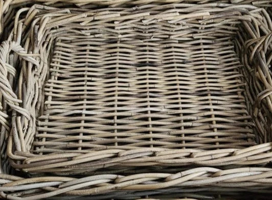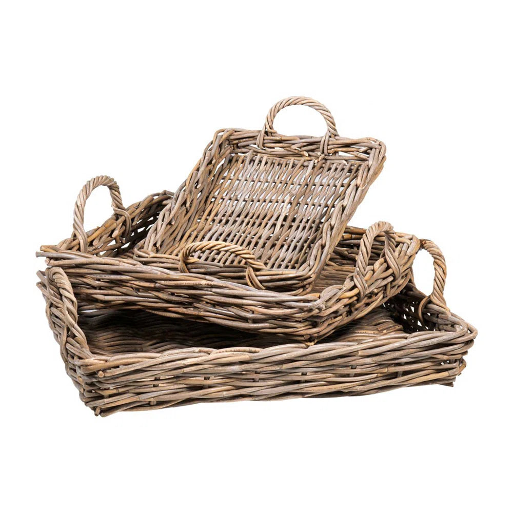 This handcrafted set of natural rattan serving trays is perfect for adding a touch of eco-friendly style to your home. These trays are constructed from naturally fast-growing rattan, showcasing a commitment to sustainability without compromising on design. The grey-washed finish of the rattan adds a subtle, yet sophisticated texture, while the neutral colour ensures these trays complement any decor. Ideal for beach, coastal, and nautical-themed spaces, these serving trays are not just practical but also enhance the aesthetic appeal of your tabletop. They are designed with natural handles for easy carrying, making them perfect for serving or as decorative pieces.