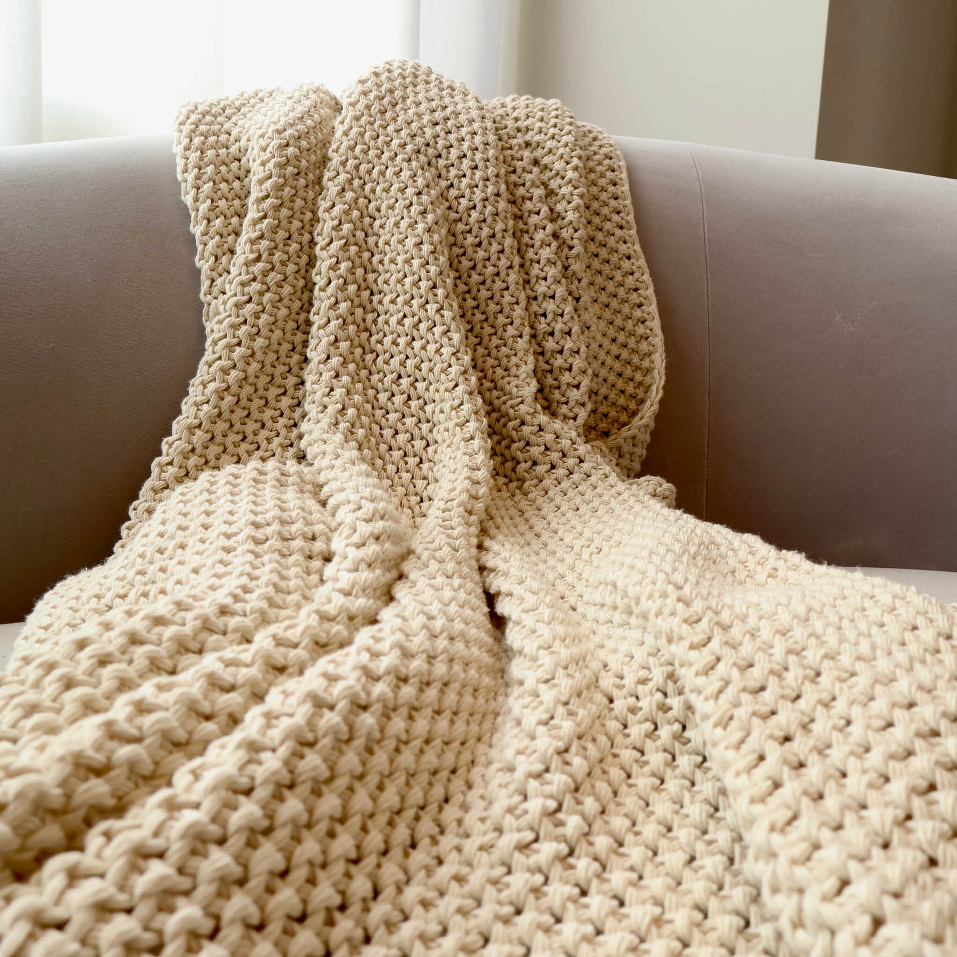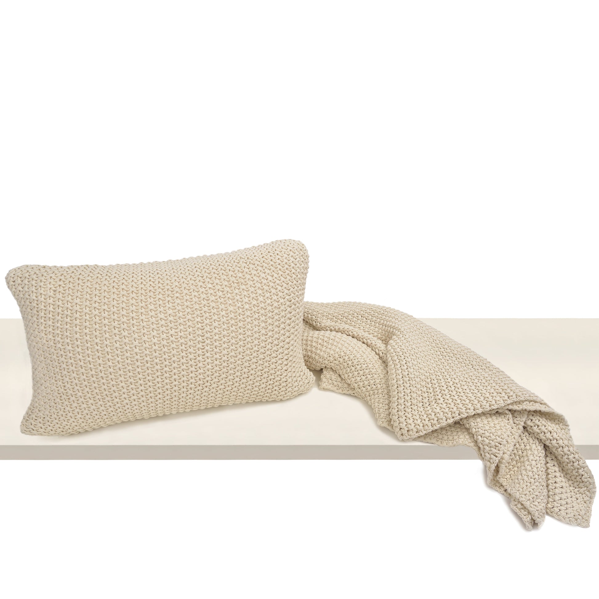 Wrap yourself up in our Jamie desert throw, created from high-quality 100% cotton. This cozy, chunky-knit throw in neutral tones will add warmth to any room. Our Jamie desert pillows in two sizes, feature a classic knit that is casual yet sophisticated. The warm neutral will be at home in any space.