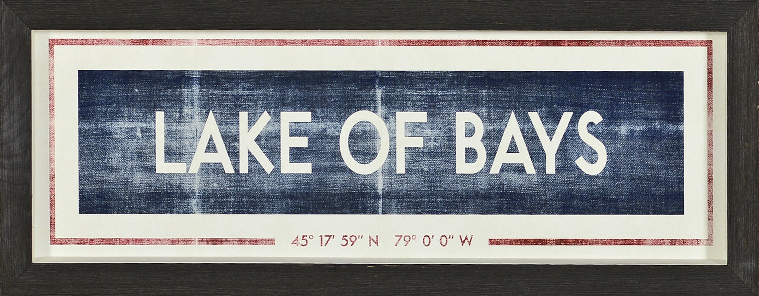 A series of whimsical, retro, cottage signs using blue jean textures in a smart indigo, red and white colour scheme. Each is set in a deep profile, rustic frame. The series include cottage locales with their location co-ordinates as well as playful non-specific ones. Fifteen variations available.